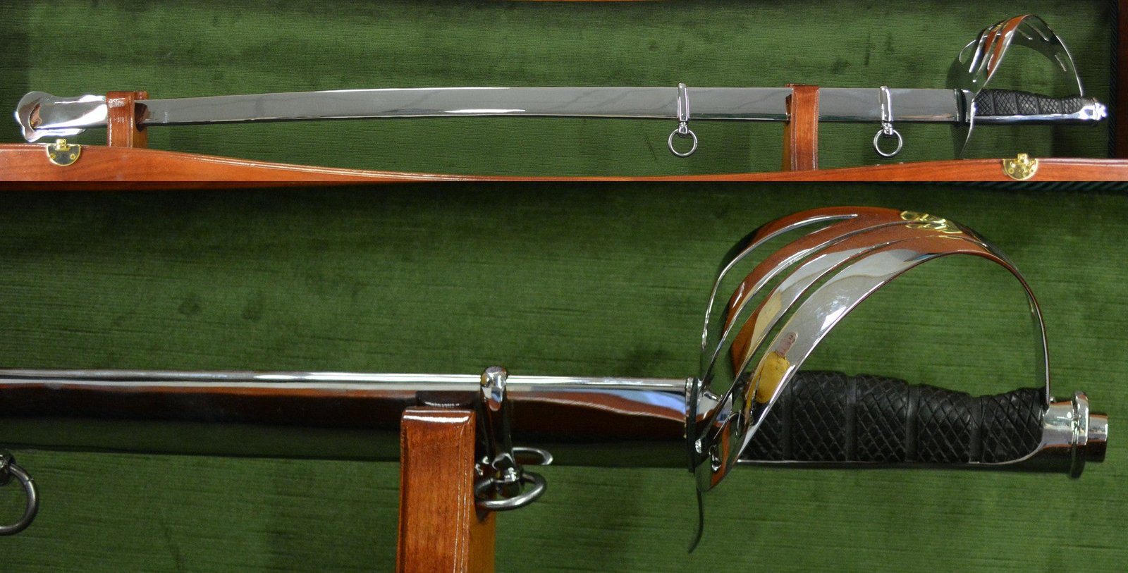 Sciabola Ufficiale Artiglieria a Cavallo lama larga mm 23 semic. Acc. inox c/Mobildeno disegno Batteria Cavallo 1831 man.in ebano zigr. Fod.piatto.Indicare l’altezza della sciabola al momento dell’acquisto (da prendere da terra all’ombelico).